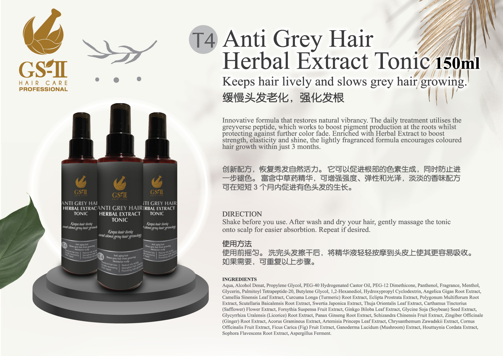 T4 Anti Grey Hair Herbal Extract Tonic 150ml (Per Bottle)